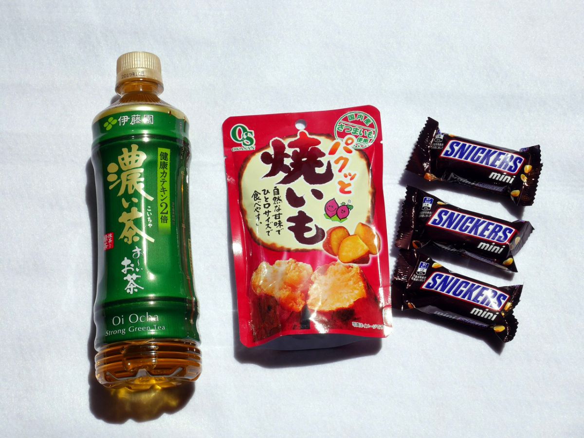 夜中にお腹が空いて眠れない…なんてことがないように軽食もあると安心。まわりの迷惑にならないよう、食べるとき音がしない、そして匂いの強くないものを選びましょうね。