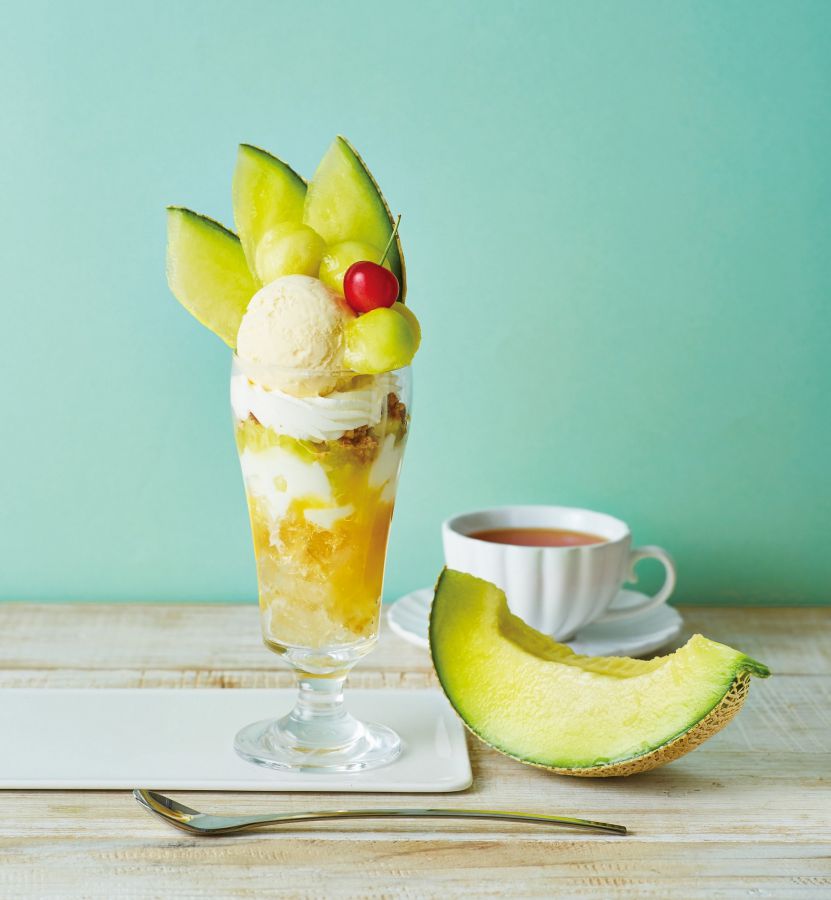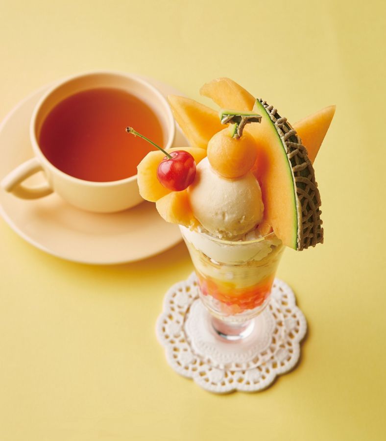 5月22日(水)は、マスクメロンを贅沢に使い、エルダーフラワーのミルクプリン、瀬戸内レモンジュレ、バニラアイス、グラノーラをあわせた「マスクメロンと瀬戸内レモンジュレのパフェ(紅茶付き)」1707円を販売。