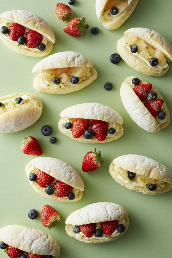 アフタヌーンティー・ベイカリー各店舗と、アフタヌーンティー・ティールーム(パン取り扱い店舗のみ)でも2つの“Be Fruity Day”スペシャルパンを販売します。しっとりと焼き上げたパンオレにミルクとヨーグルトのクリームを絞りフルーツをサンドした「白桃とブルーベリーのフルーツサンド」と「苺とブルーベリーのフルーツサンド」各238円。2つとも買って食べくらべしてみませんか?