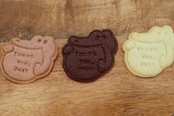 こちらでは、お店のメインキャクターでもあるワニをモチーフにした「ワニくんクッキー」(各80円)が大人気!左から、苺・ココア・プレーンの3種類を用意しています。