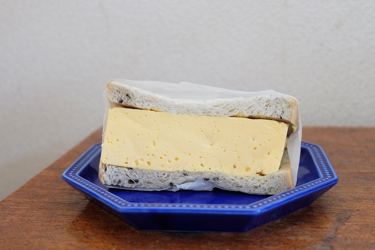 厚焼き玉子がたっぷり入っている「厚焼き玉子サンド」(290円)はランチや小腹が空いた時にぴったり。黒ごま食パンを使用しているので、黒ごまの風味も楽しむことができます。
