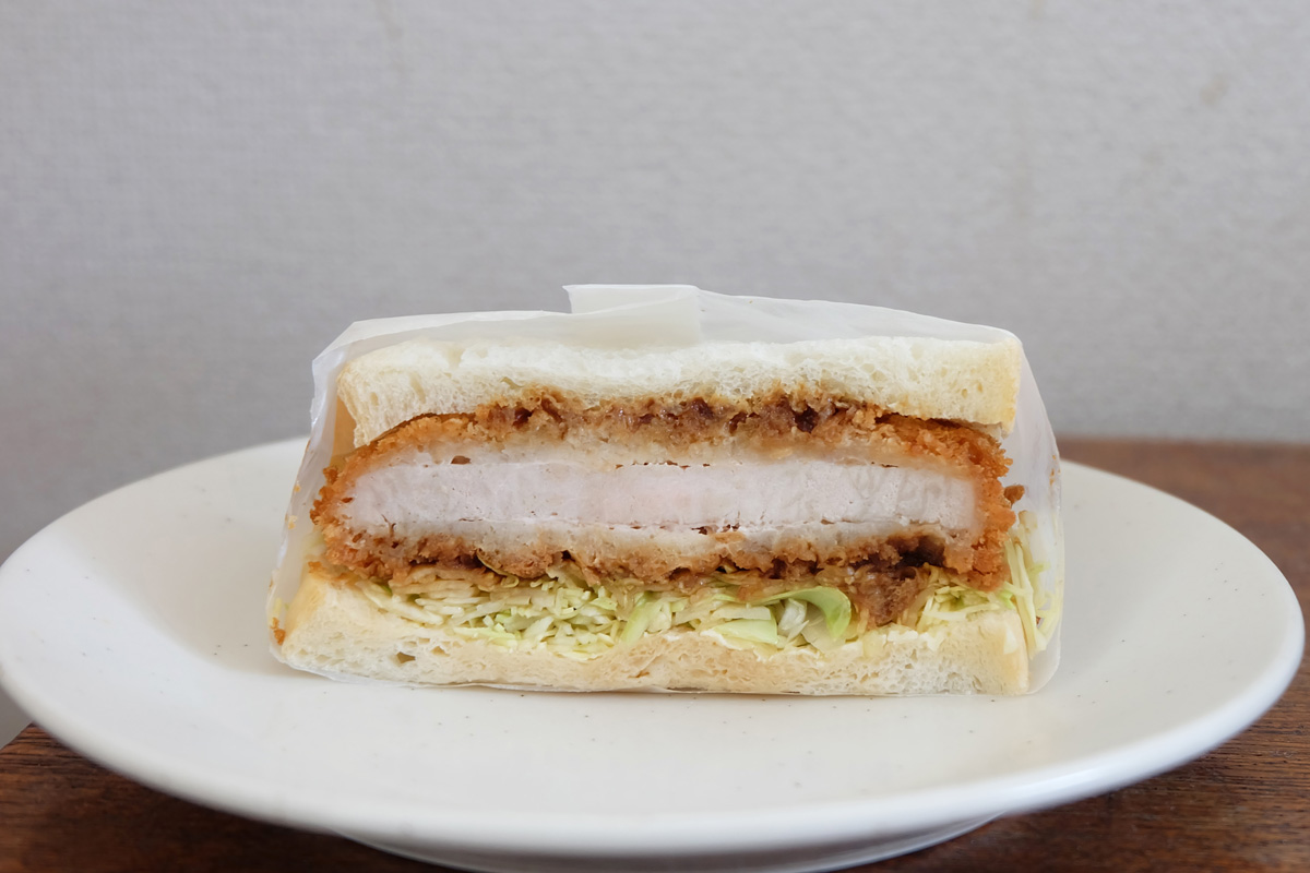 分厚いカツサンドが入った「八丁味噌カツサンド」(420円)。玄米食パンを使用しながら、シャキシャキのキャベツと味噌がたっぷり染み渡っている味噌カツが特徴です。