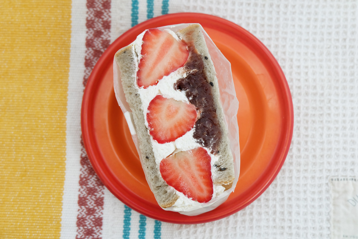 大きないちごが入った「いちごの小豆クリームサンド」(380円)も大人気。小豆の甘さと生クリーム、いちごの酸味が口いっぱいに広がります。