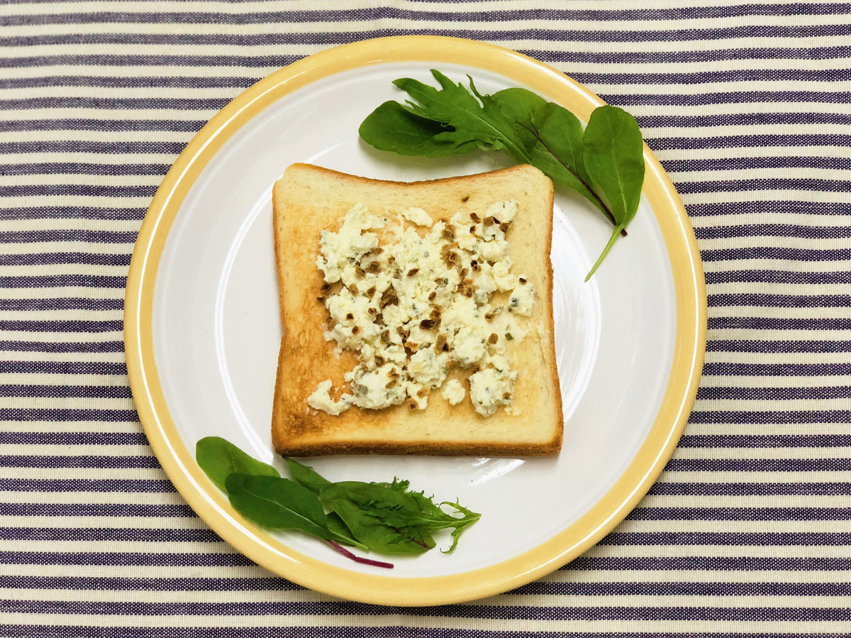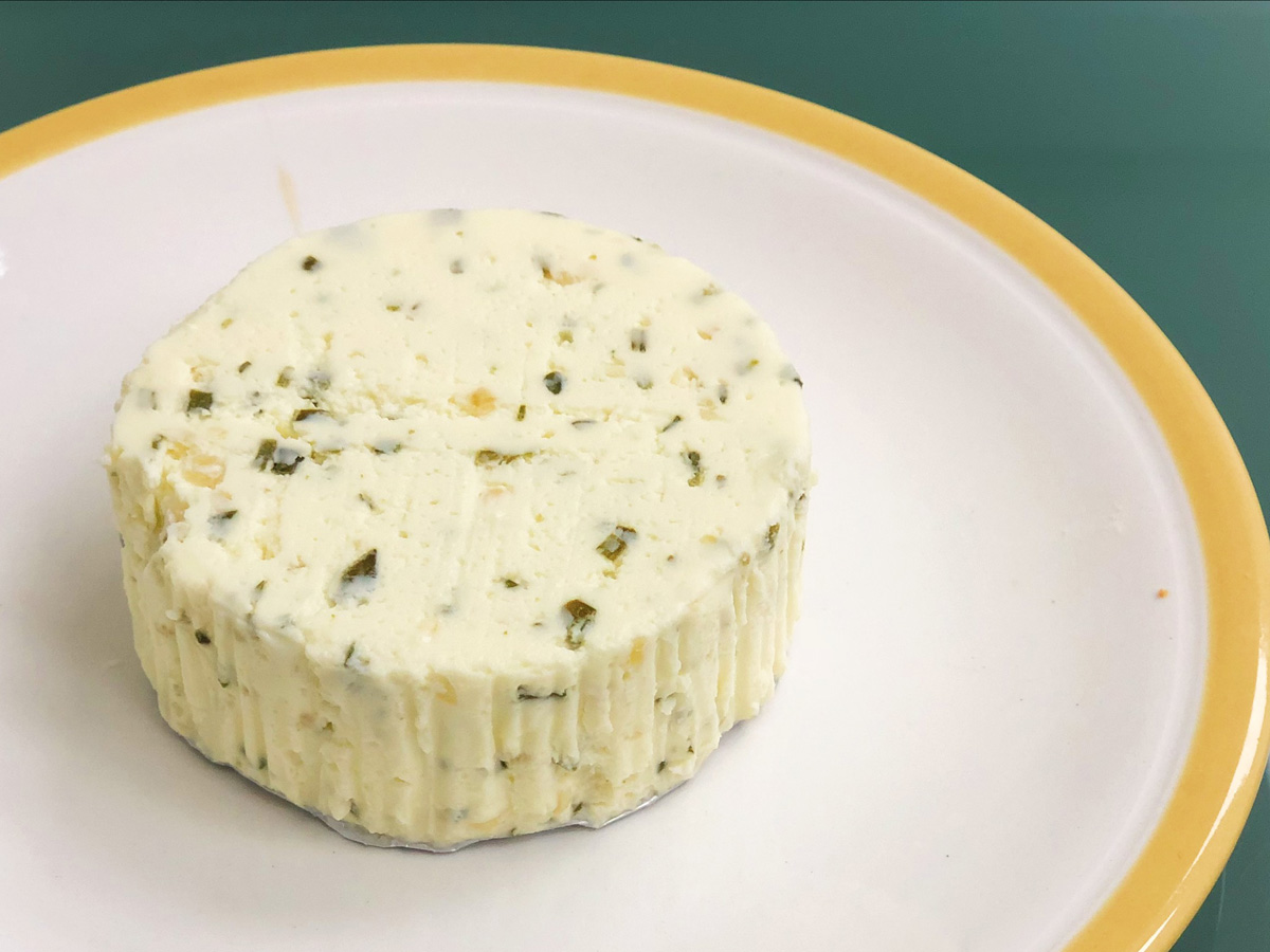程よいかたさで、パンに塗りやすいテクスチャーです。チャイブの細かいグリーンが見た目と香りのアクセントになっています。