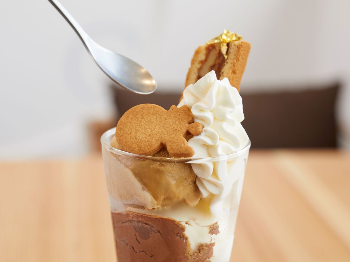 “クルミッ子”を作る際に、どうしても出てしまう切り落としの部分を“無駄にすることなくおいしく食べられるように!”と“クルミッ子”をパフェに再構築した一品。