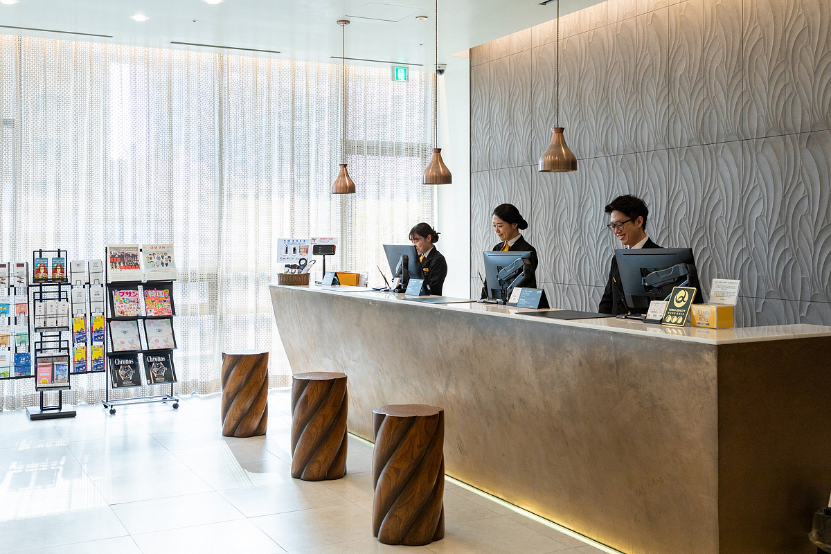 チェックインは3階のフロントで。窓から陽光が注ぎ込む空間はモダンなカラー使いでとてもおしゃれです。2017年4月開業のホテルだから、施設も新しくてきれい!マガジンラックには日本語のガイドブックがたくさん用意されているので、大きなソファーでくつろぎつつ「どこに行こうか?」なんてチェックするのも楽しいですね!