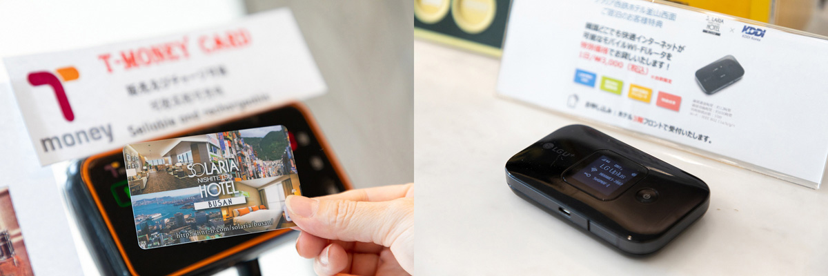 しかも、お出かけの時に役立つモバイルWi-Fiのレンタル(1日/3000KRW)や、韓国全域で使える交通カード(Tマネー)の販売&チャージもフロントでOK。特にホテルオリジナルデザインのTマネーは、お土産にも好評です。たくさん買い物をしてもフロントからEMS(国際郵便)を利用して自宅へ配送することができるので超便利。