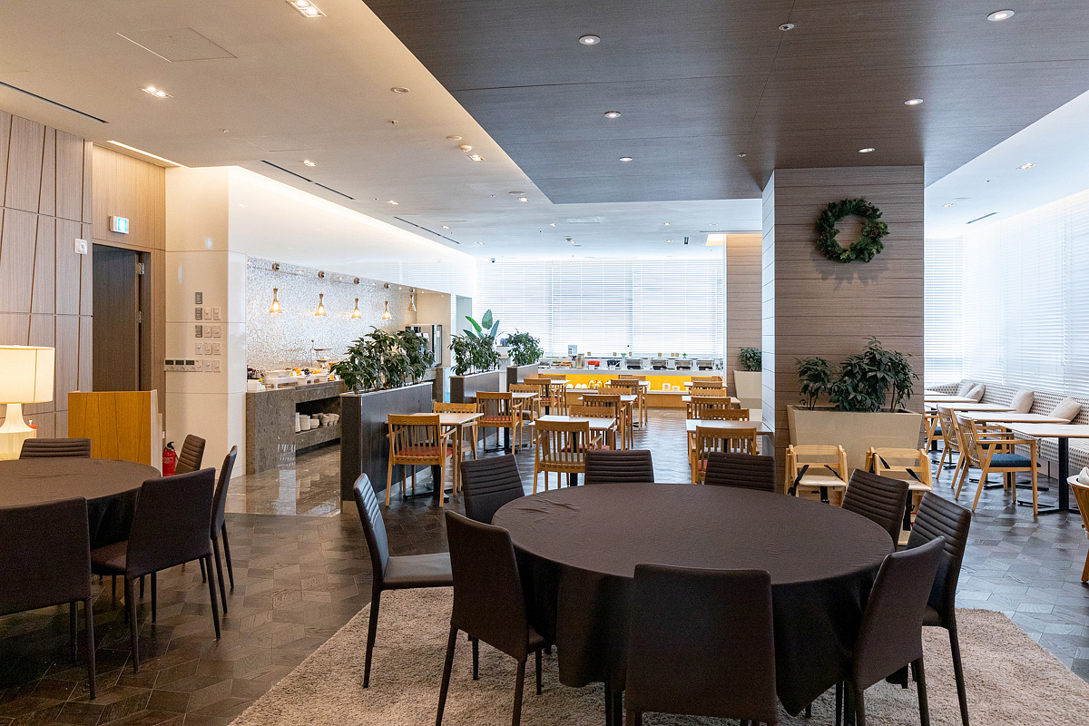 朝食会場はフロントのある3階。大きな窓から朝の日差しが降り注いでとてもすがすがしい空間です。窓際にはソファー席もあり、居心地抜群!ナチュラルな色調でまとめられ、まるでカフェのようなおしゃれで癒される雰囲気です。