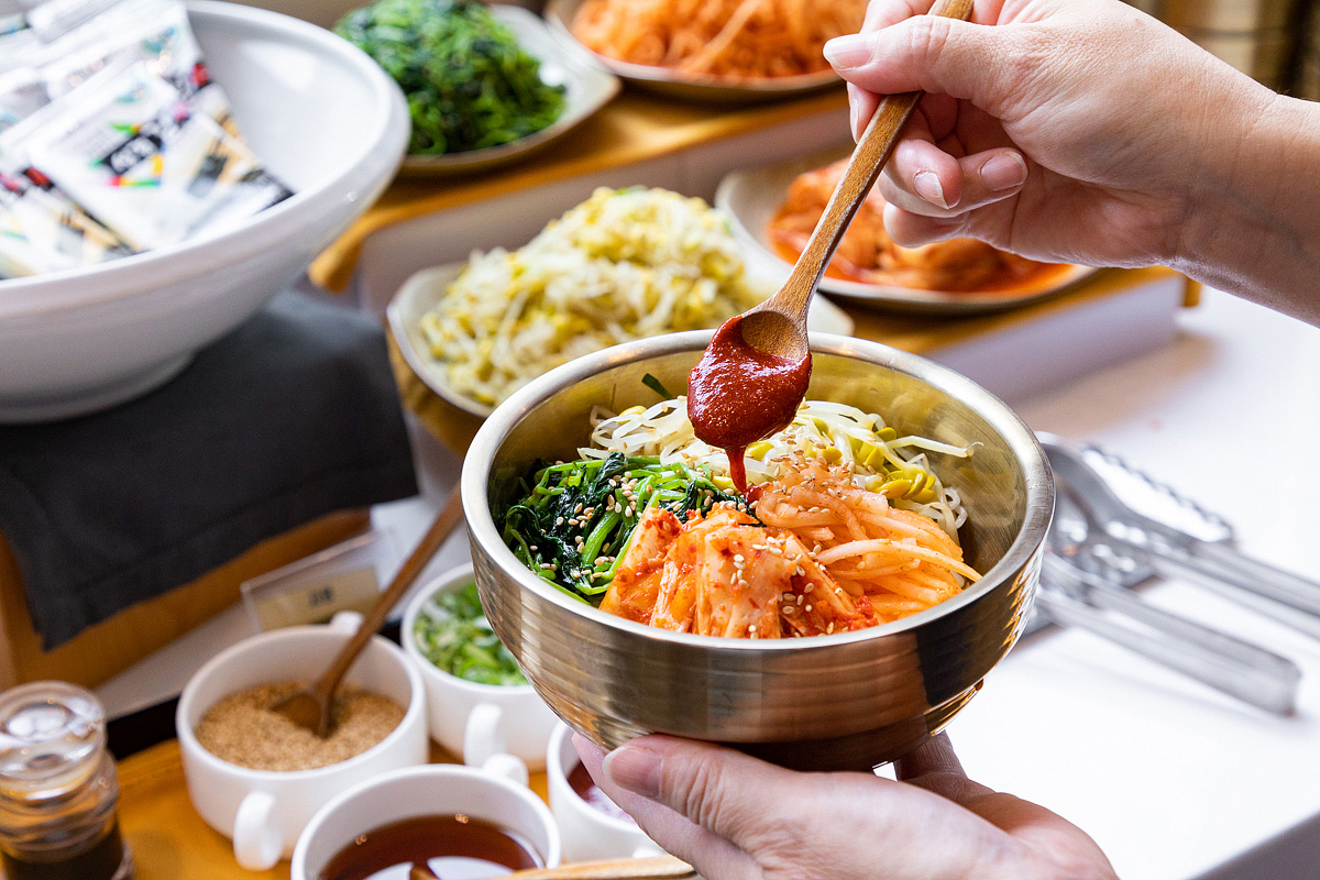 朝食はあわび粥?自作ビビンバ?焼きたてパン?絶品!和洋韓ビュッフェ