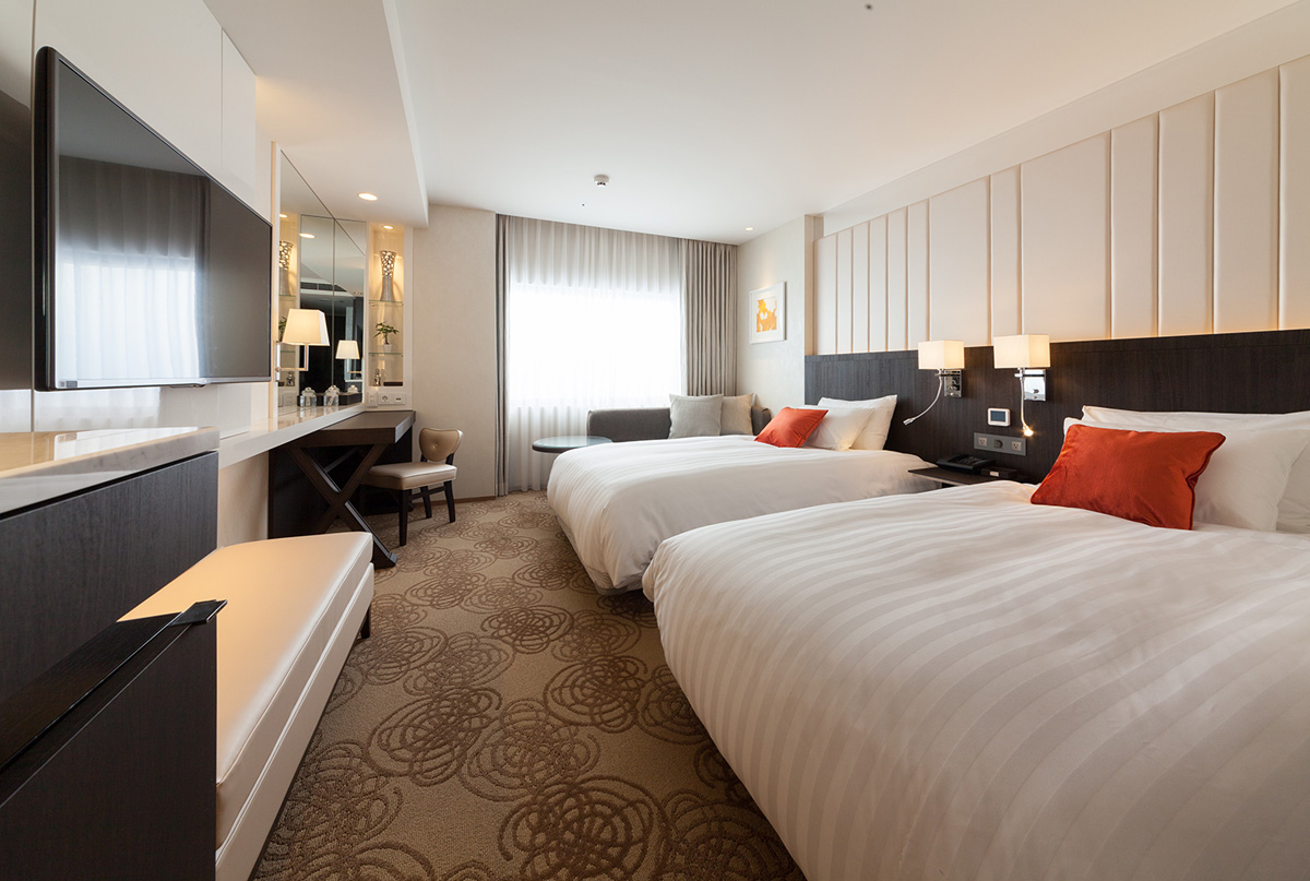 「スタンダードツイン」は、部屋の両側にある大きな窓から見える景観も魅力の一つ。特に高層階の「スタンダードツイン」は、その眺めの良さから大人気。どのタイプの客室にもソファーもあってゆったりできそうです。