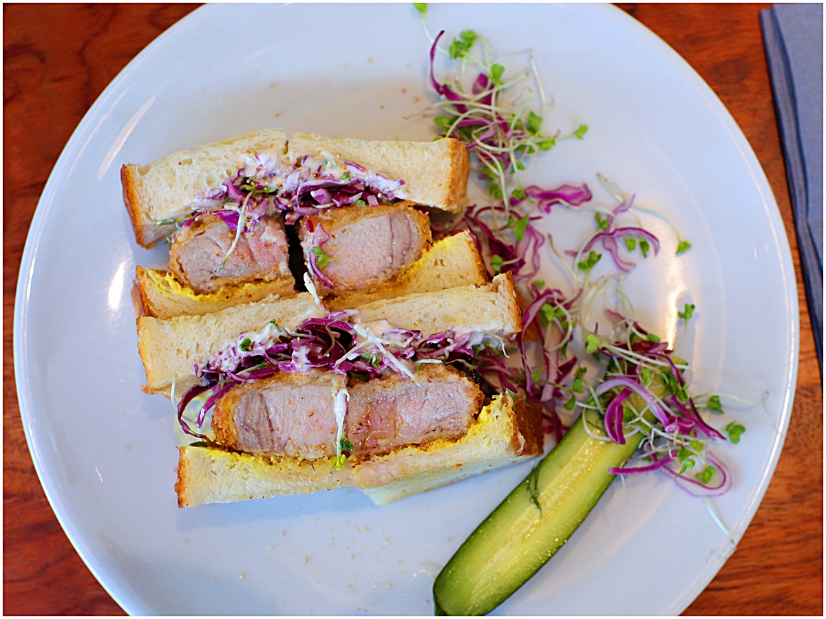 この日のメニューは「西京味噌のカツサンド」(税込1200円)。揚げたてアツアツの厚切りのサクサクカツをサンドしています。