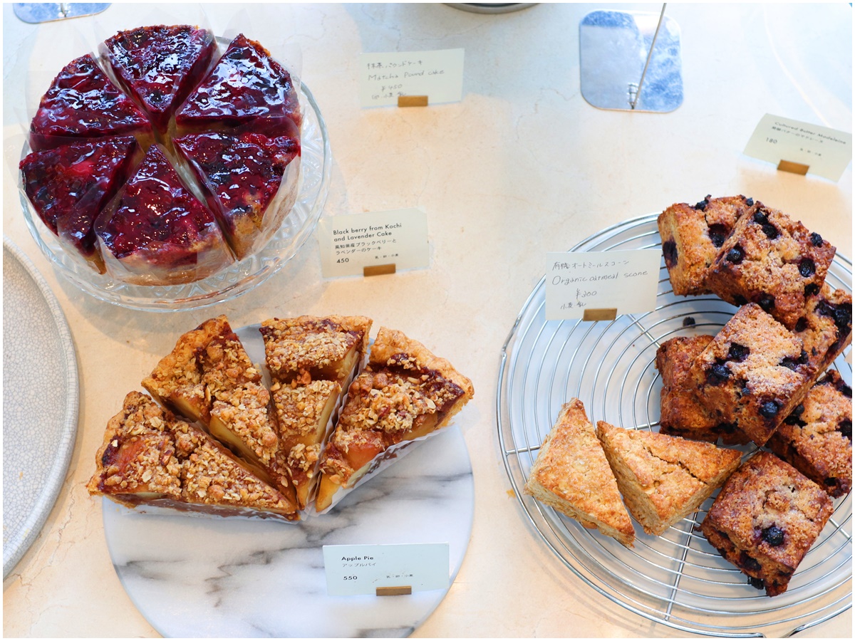 フランスやヨーロッパの伝統的な製菓技術をベースに、季節のフレッシュパティスリーや、スコーン・クッキーなどのアメリカンベイキングも。こちらのスイーツは、テイクアウトはもちろん19時までは店内でいただくことも。