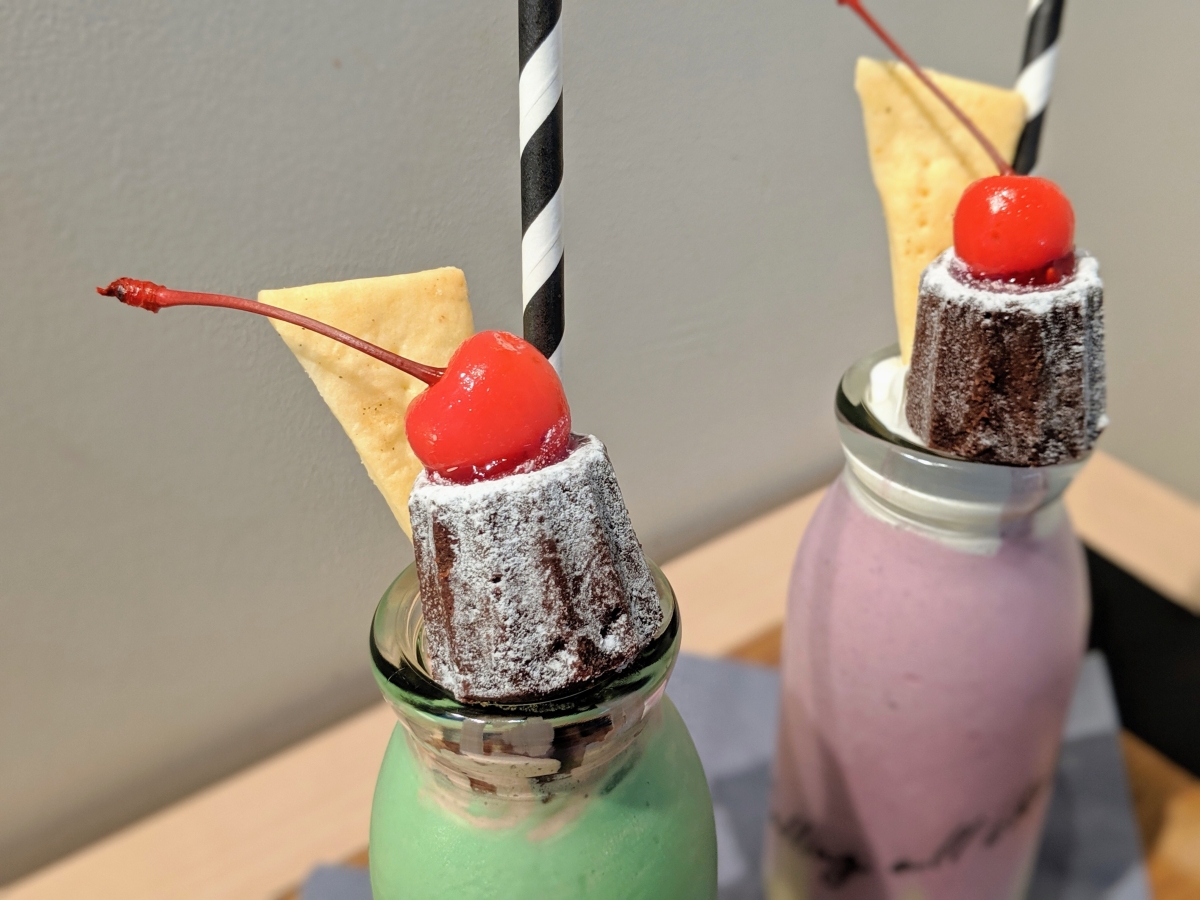 こちらが2019年4月25日にリニューアルし、よりカラフルになった「チョコレートシェイククーラー」(税抜800円)。左がピスタチオで、右がブルーベリーです。