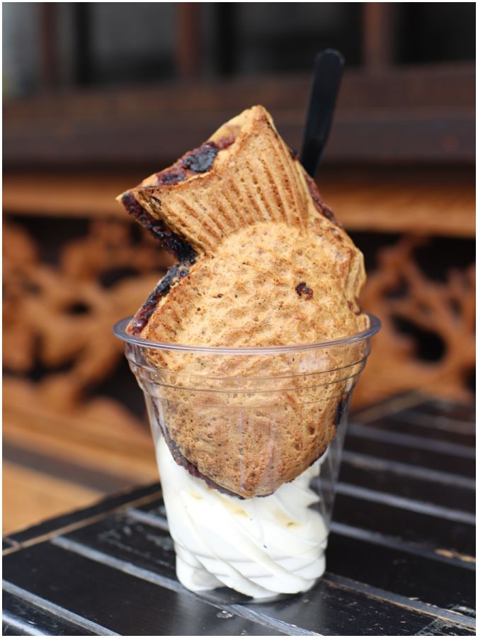 「すぐに食べるのがおすすめ!」と教えてもらった通りに、注文してすぐにいただきました。 つめたいソフトクリームに、アツアツのクリスピー生地のたいやきが相性バッチリ。また、濃厚なソフトクリームとやさしい甘さのつぶあんの組み合わせも最高でした。ぜひ食べてほしいスイーツです。