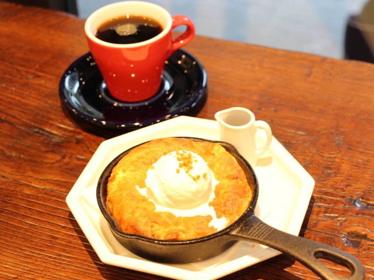 ほかの店舗にはない「鉄板ドーナツフレンチ」(※14時以降のメニュー)が特に人気なんだとか。鉄板に入ったパンケーキやフレンチトーストは見たことがあるけど、こちらはなんとドーナツ!アツアツの鉄板に、表面サクサク&中身フワフワのドーナツフレンチ、その上に冷たいアイスがのせられています。