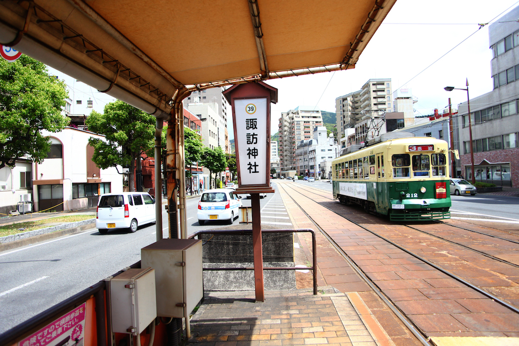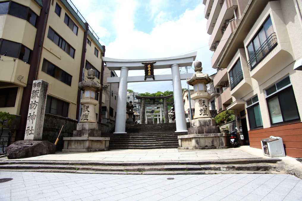 長崎市街を走る路面電車の電停「諏訪神社」を降りるとすぐに、歴史を感じる大きな鳥居がみえてきます。戦国時代、長崎をキリシタン大名が治めていた頃、一時イエズス会の教会領となったことがありましたが、江戸幕府になってキリスト教が禁止されてからは逆に神道の力を強めるために神社が再興されていきました。諏訪神社もその一つで、寛永2年(1625)に創建された由緒ある神社です。