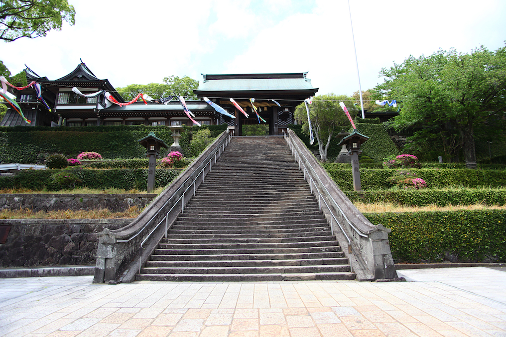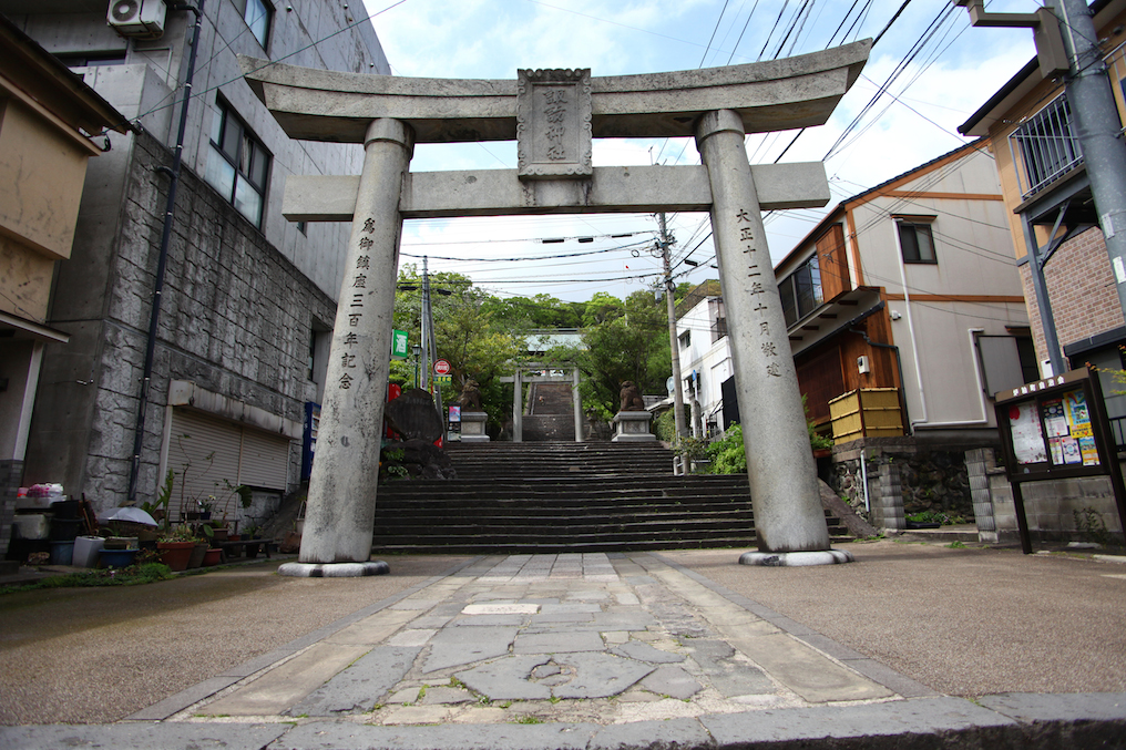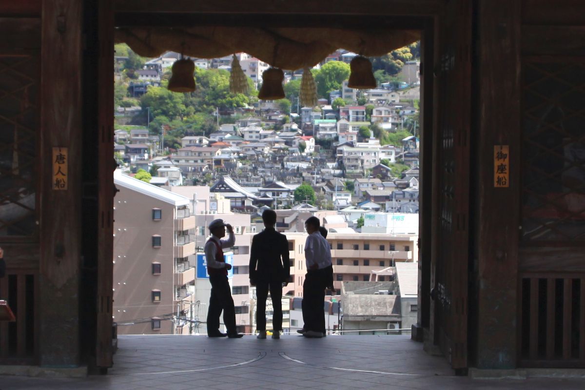 拝殿前の階段上からは長崎の街並みを見下ろせ、気持ちのいい景色が広がる絶景スポットでもある諏訪神社。