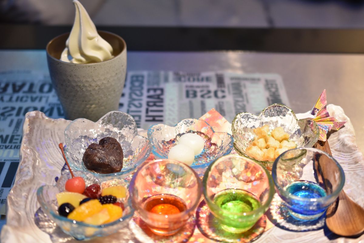 21時からのバータイムは、アルコールやフードが中心。スイーツメニューは少なくなってしまいますが、ソフトクリームはどちらの時間帯でも楽しめ、トッピングのリキュールも注文できますよ。