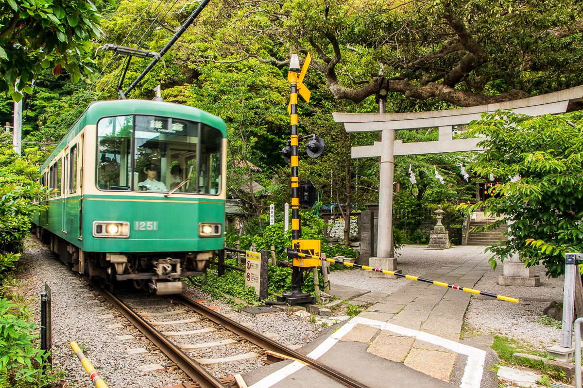 鎌倉のシンボル“江ノ電”とふれあう神社