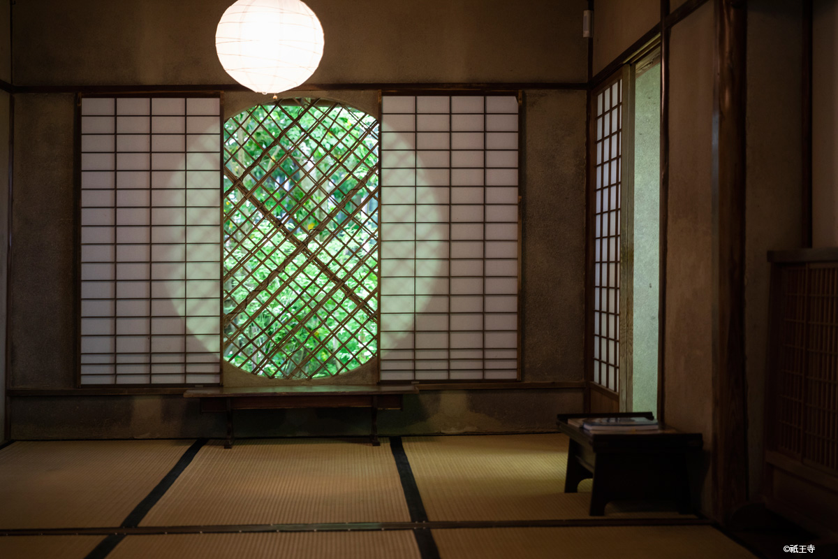 ここは、奥嵯峨の竹林の中にひっそりと佇む『平家物語』ゆかりの寺。仏御前の出現で平清盛の愛を失った白拍子の祇王が、母、妹と尼になってここに移り住んだ場所です。後に仏御前も尼になり、ともに晩年を過ごしたといわれています。草庵には、大日如来、清盛と4人の像を安置。影が虹色に映る吉野窓が見どころです。