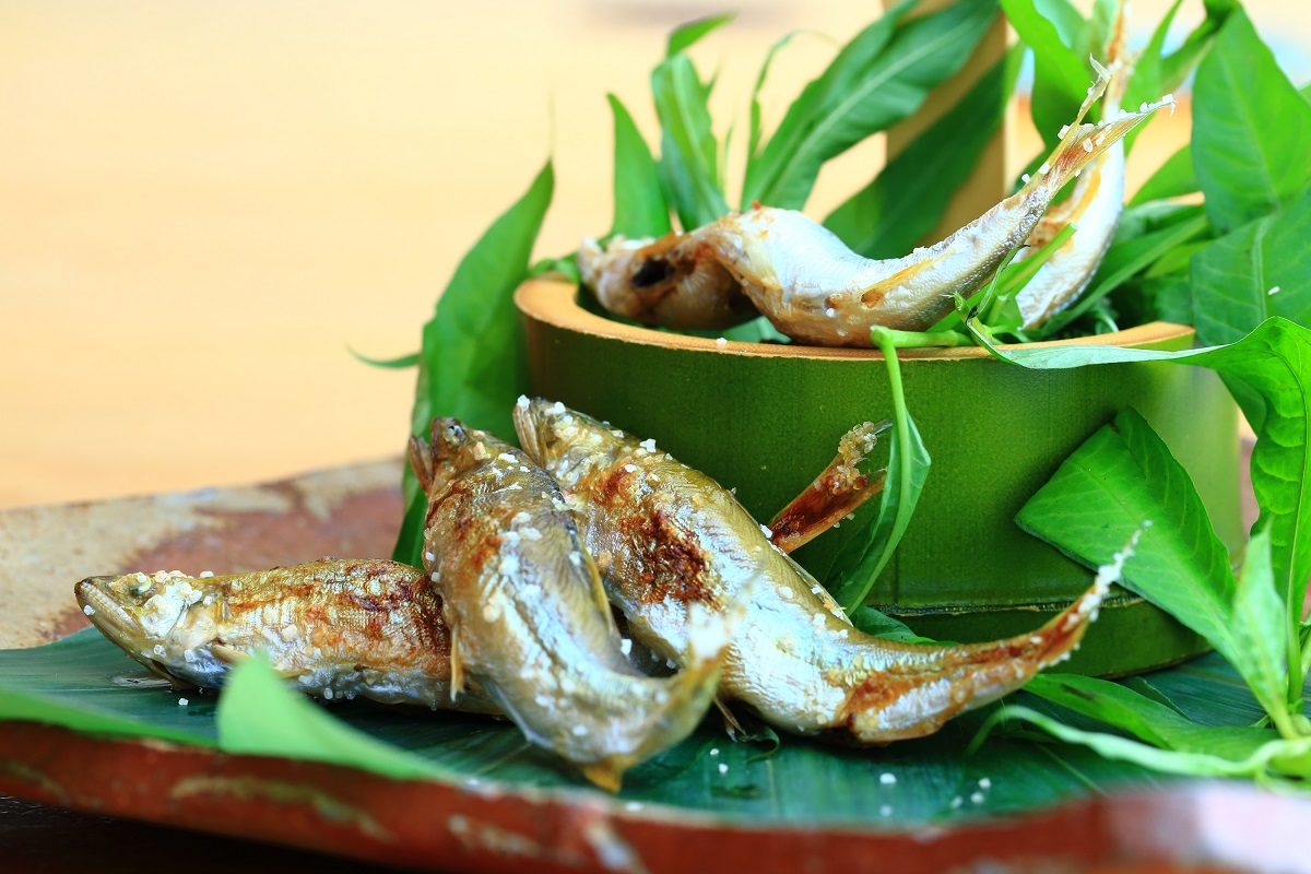 川床でいただく焼き物といえば、やはり鮎の塩焼き。ほどよい塩気と身のうま味にお酒が進みます。