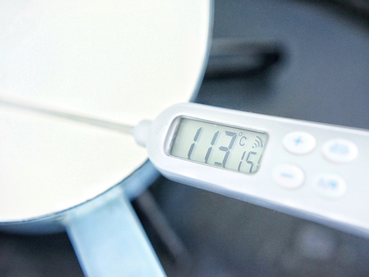 200℃まで計れる調理用温度計とクッキングシート、熱さに強いお鍋を準備してください。