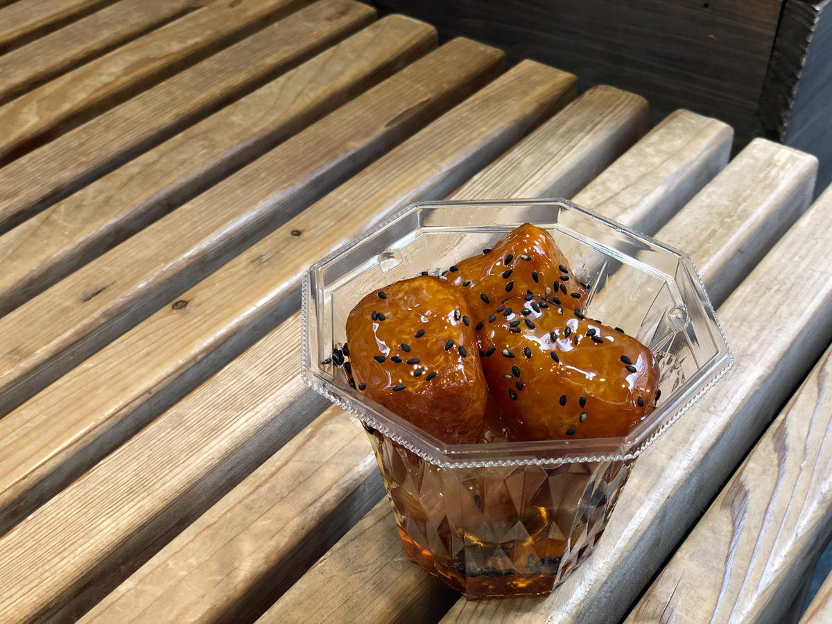 「おいもやさん興伸」といえば大学芋!というくらい、お店の代名詞ともいえる大人気商品の「大学芋」は、その時期で一番おいしいサツマイモをカリッと揚げて、興伸家伝のミツを絡めた下町の味です。