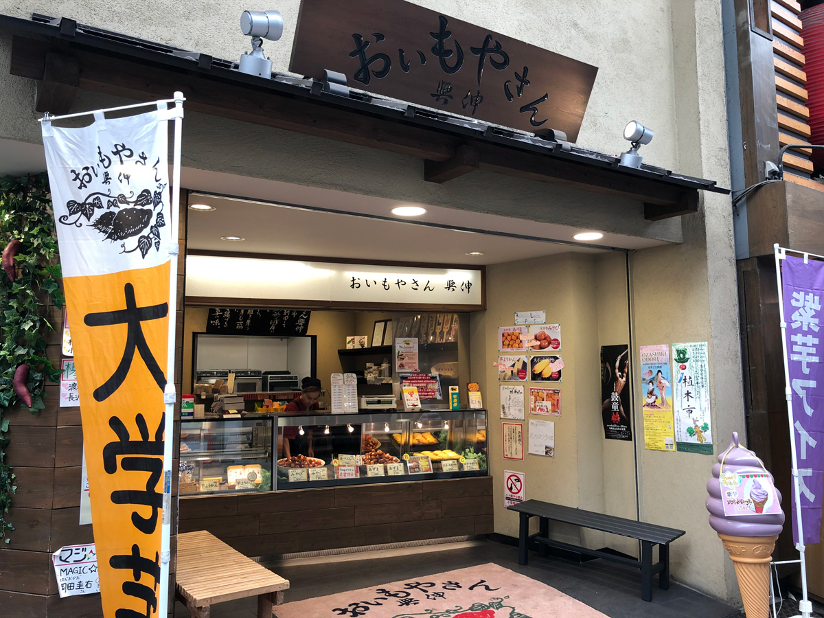 東京メトロ浅草駅から3分ほど歩くと見えてくる“紫色のソフトクリームのオブジェ”が目印の「おいもやさん興伸 浅草新仲見世通店」。