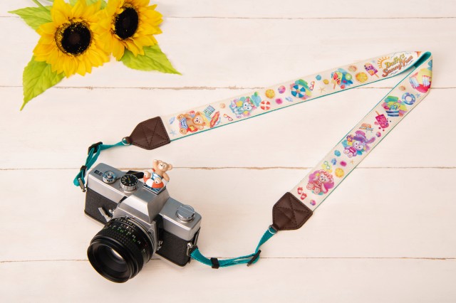 外付けフラッシュの取り付け位置に付けられるマスコット付きの「カメラストラップ」3400円。