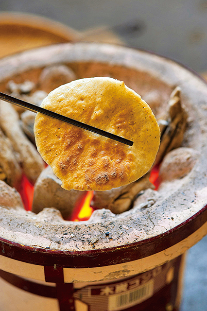 焼きたてアツアツをひとかじり!七輪で手焼きせんべいに挑戦