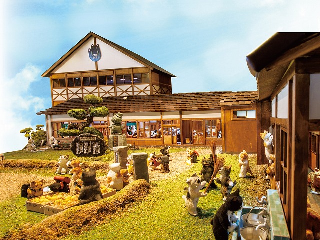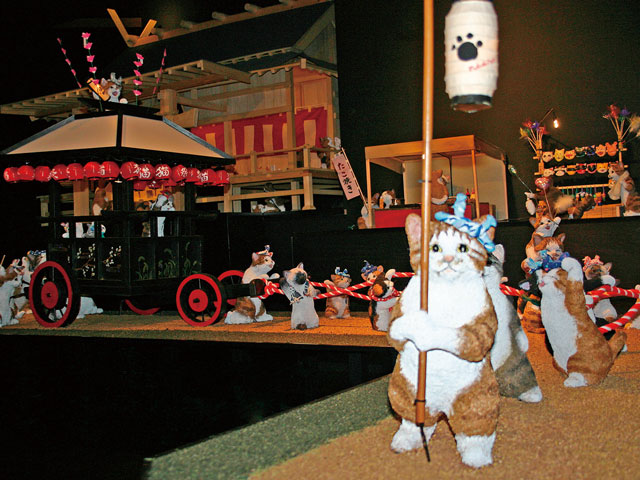 会津喜多方の工芸品を製造販売している漆器店。ここを訪れたら、必ず見てほしいのが2階の「桐の粉人形館」。会津に伝わる人形作りの要素と蒔絵技法を取り入れた独特の人形たちが出迎えてくれます。「猫じゃらし学園」や「猫の縁日 宵祭り」など、テーマに沿って作られた人形が、とにかくかわいいのです。細かいところまで作り込まれた作品は、いくら見ていても飽きません。これら人形のグッズもあるので、癒しのアイテムとしておみやげにいかがでしょう?