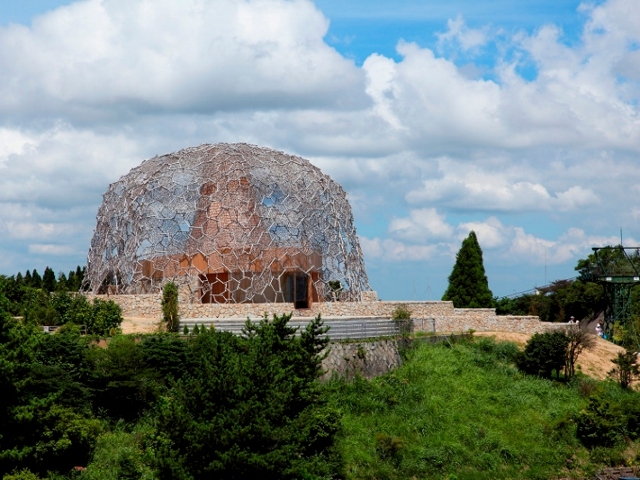 六甲ガーデンテラス内にある「自然体感展望台 六甲枝垂れ」は、フレームや壁もすべてヒノキを使って作られた展望台です。まるで大きな樹か、鳥籠のようなフォルムがポイント。中に入ると、ヒノキのやさしい香りと枝葉から降り注ぐ光に包まれ、不思議な心地よさを感じることができます。LED照明を使ったイルミネーションは、幻想的な美しさなので、ぜひ夜にも訪れたいスポットです。
