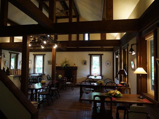 コテージを利用したカフェは森の中の隠れ家のようで、メルヘンチックな雰囲気たっぷり。ワンプレートのブランチセットや季節のパスタはもちろん、スコーンやクラフティなどのスイーツも充実しています。地産地消&手作りの食事は、どれも絶品。テラス席では、やさしい緑と鳥のさえずりに包まれながら、のんびりランチやティータイムを満喫できます。