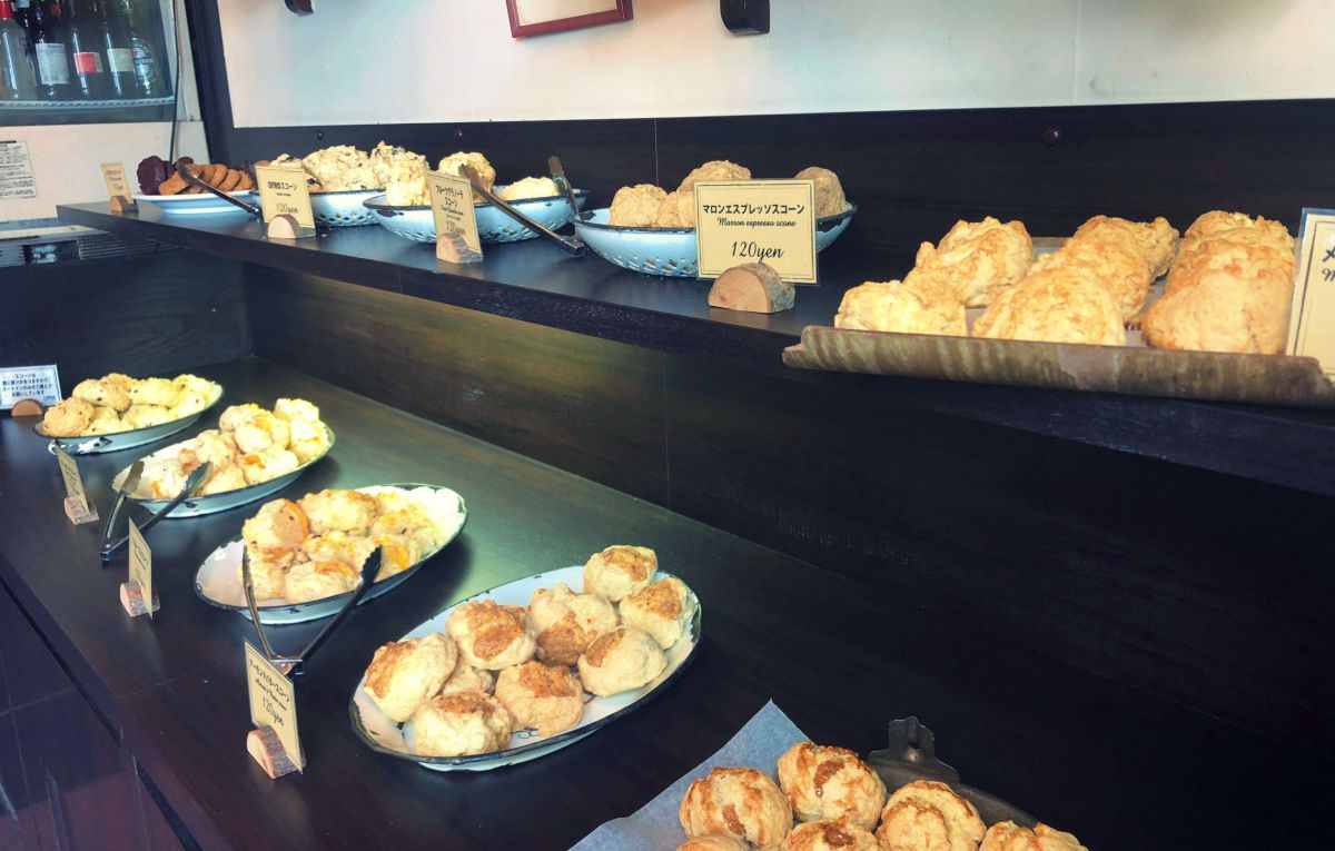 入口脇には10種類以上の日替わりスコーンがずらり!毎朝店内で手作りされたものが並んでいて、1個120円からという安さに驚きです!新作も毎月登場するので、足を運ぶたびに違う味に出会えそう。
