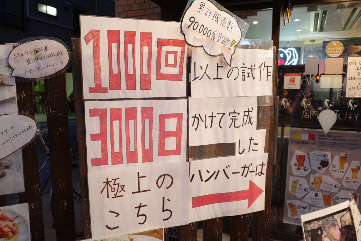 看板には「1000回以上の施策&3000日かけて完成した極上のハンバーガー」と書かれています。これは期待大!