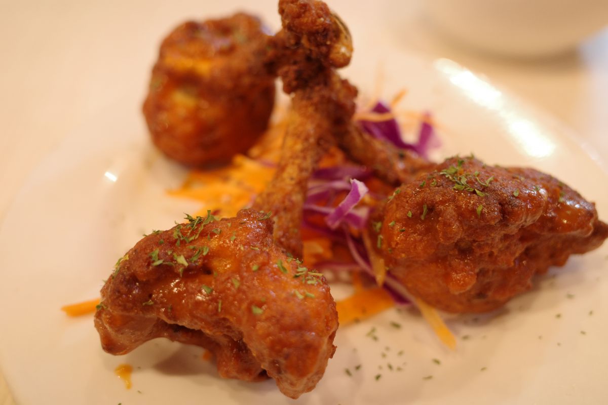 甘辛味がたまらない「バッファローチキンウイング」(税抜180円/1ピース)は手づかみでいただいちゃいましょう。1ピースからオーダーできるところもうれしいポイント。