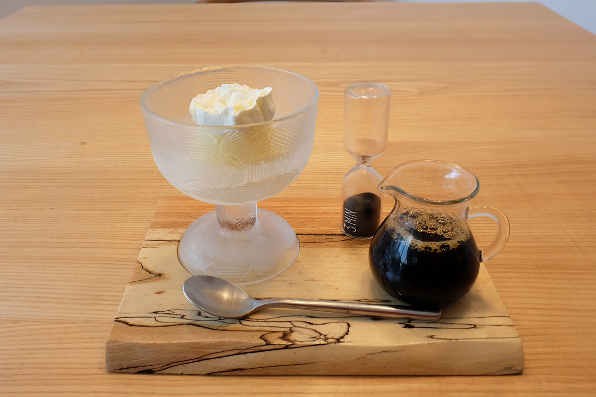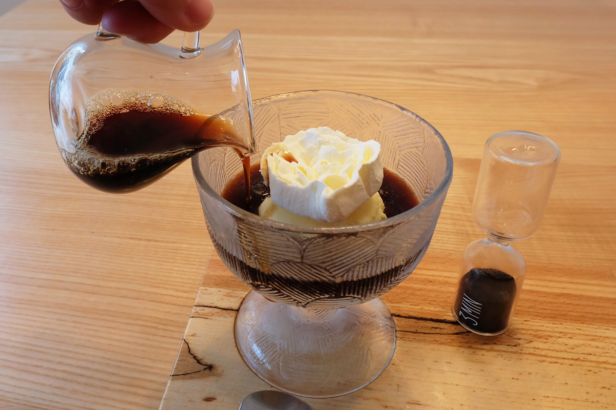 一口食べた瞬間、プルプルとした食感とともにコーヒーの香り・味わいが口いっぱいに広がり、アイスクリームの甘さと絶妙にマッチ!ここに来たら必ず頼んで欲しい一品です。
