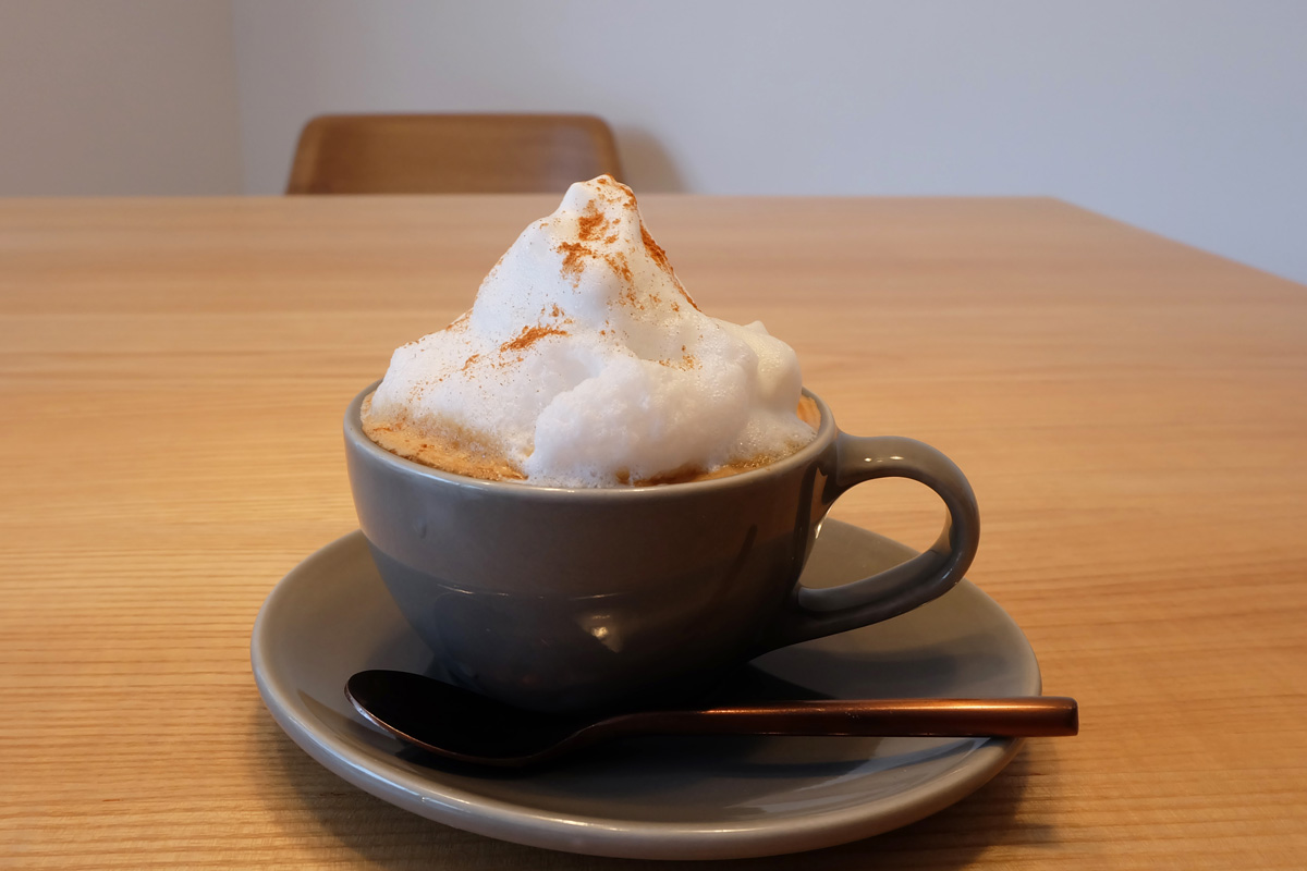 ダブルトールカフェ名古屋の定番コーヒー「カプチーノ」(660円)。ふんわりとしたミルクが人気の秘密です。