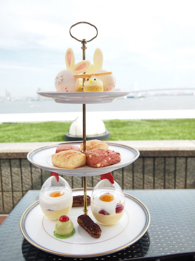 そんな絶景とともに味わえるのが今回のアフタヌーンティー。季節により内容が変わるティースタンド、取材時のテーマは“イースター”でした。