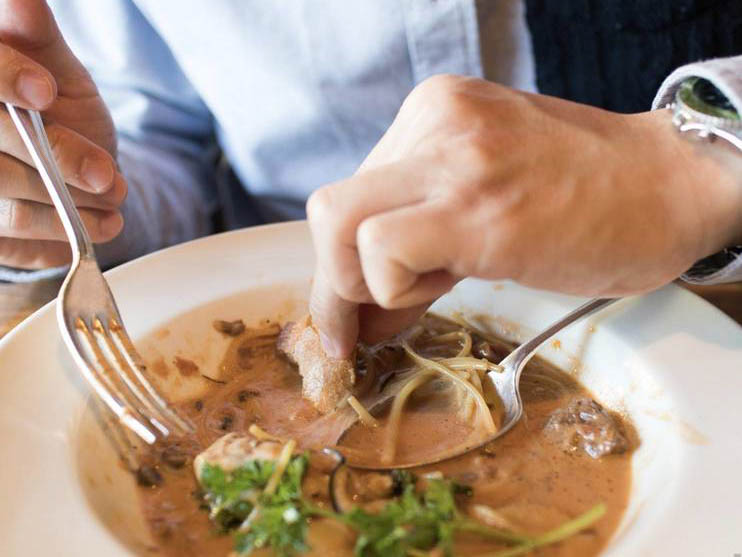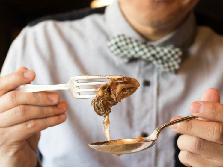 絶品ソースは余すところなく食べ尽くしたい!そんな時はパンにつけて食べるのがおすすめ。香ばしいパンに、牛スネ肉と牡蠣のうまみが溶け込んだラグーソースが染み込んで、間違いない美味しさ!贅沢ソースを最後まで堪能することができます。パンを先に食べてしまわないよう、ペース配分も重要ですね。