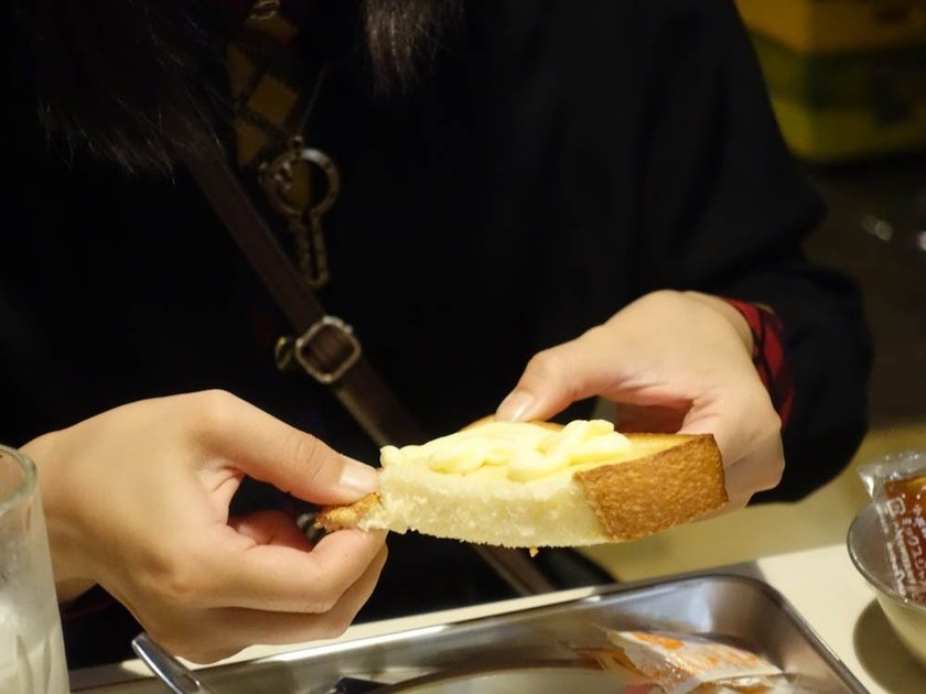 同じく尾道にある「ネコノテパン工場」のこだわり食パンを使ったトーストは、ちぎるとさっくりふかふか。
