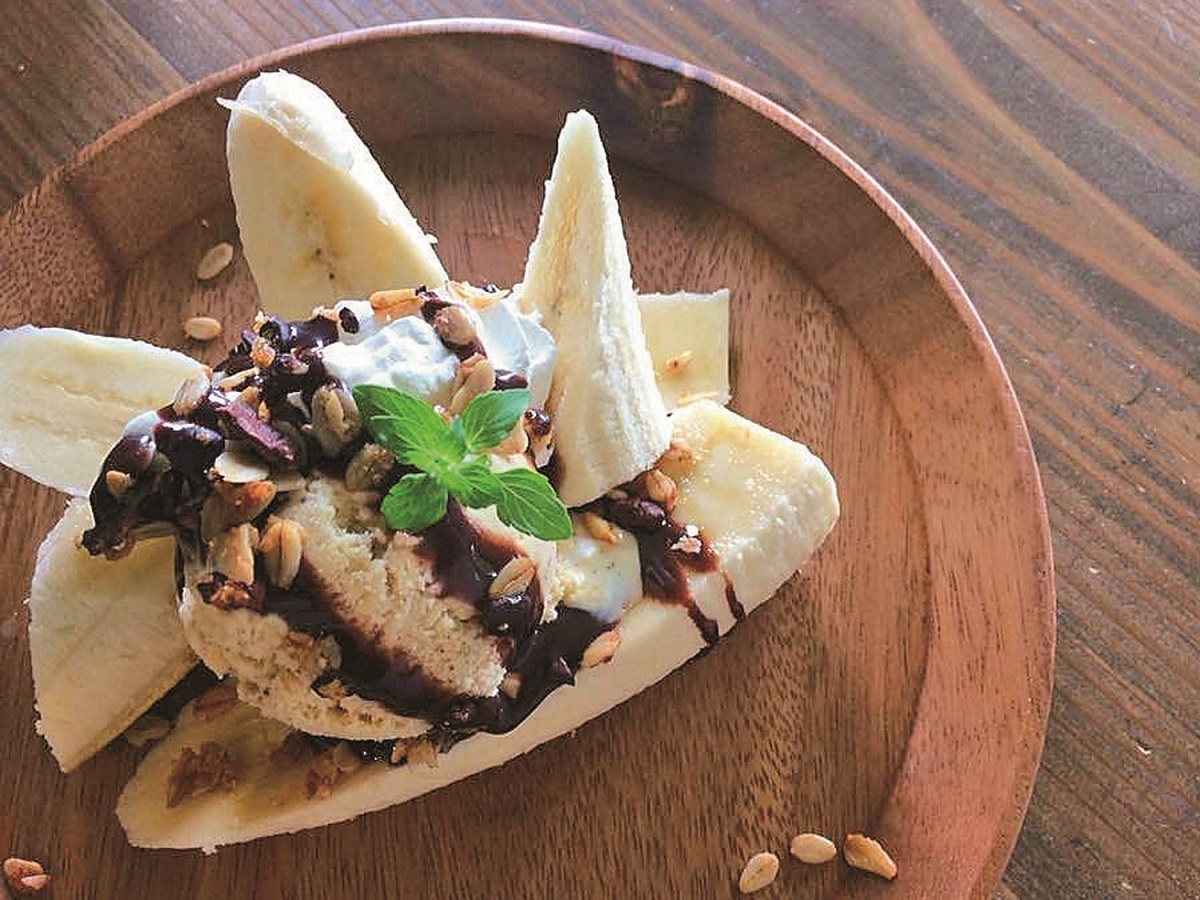 エクアドル産のバナナを1本使用した「バナナスプリット」(700円)は、グラノーラやアイスの食感も楽しい!