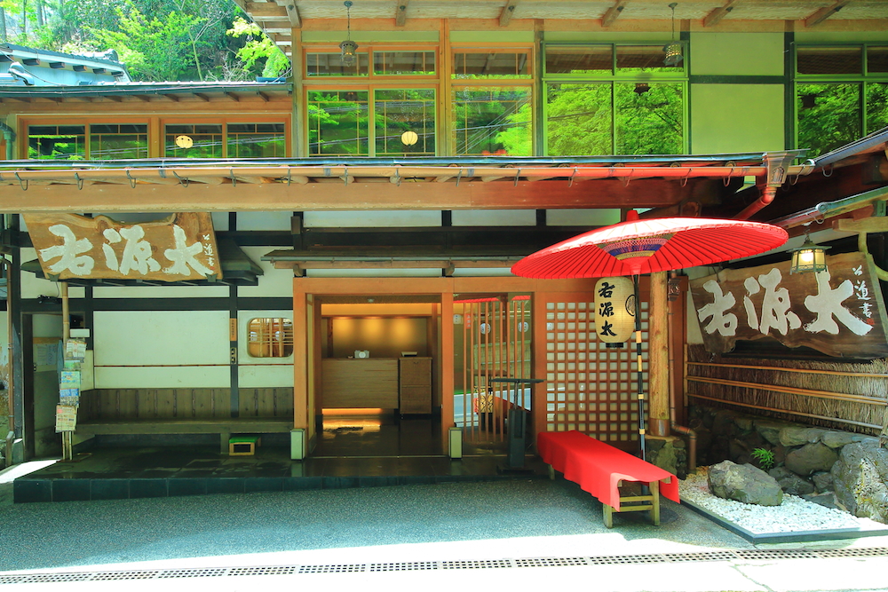 貴船神社から徒歩約4分のところにあるのが料理旅館「右源太」。貴船エリアの夏の風物詩・川床を設営する代表店のひとつです。元は貴船神社の社家を古くから務めていたお家柄で、昭和37年に宿として開業しました。