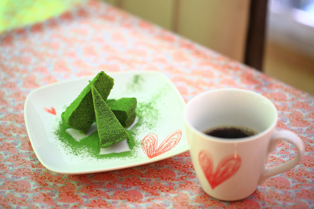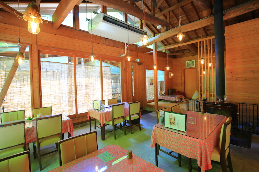 開放的な山小屋風カフェで特製抹茶スイーツを