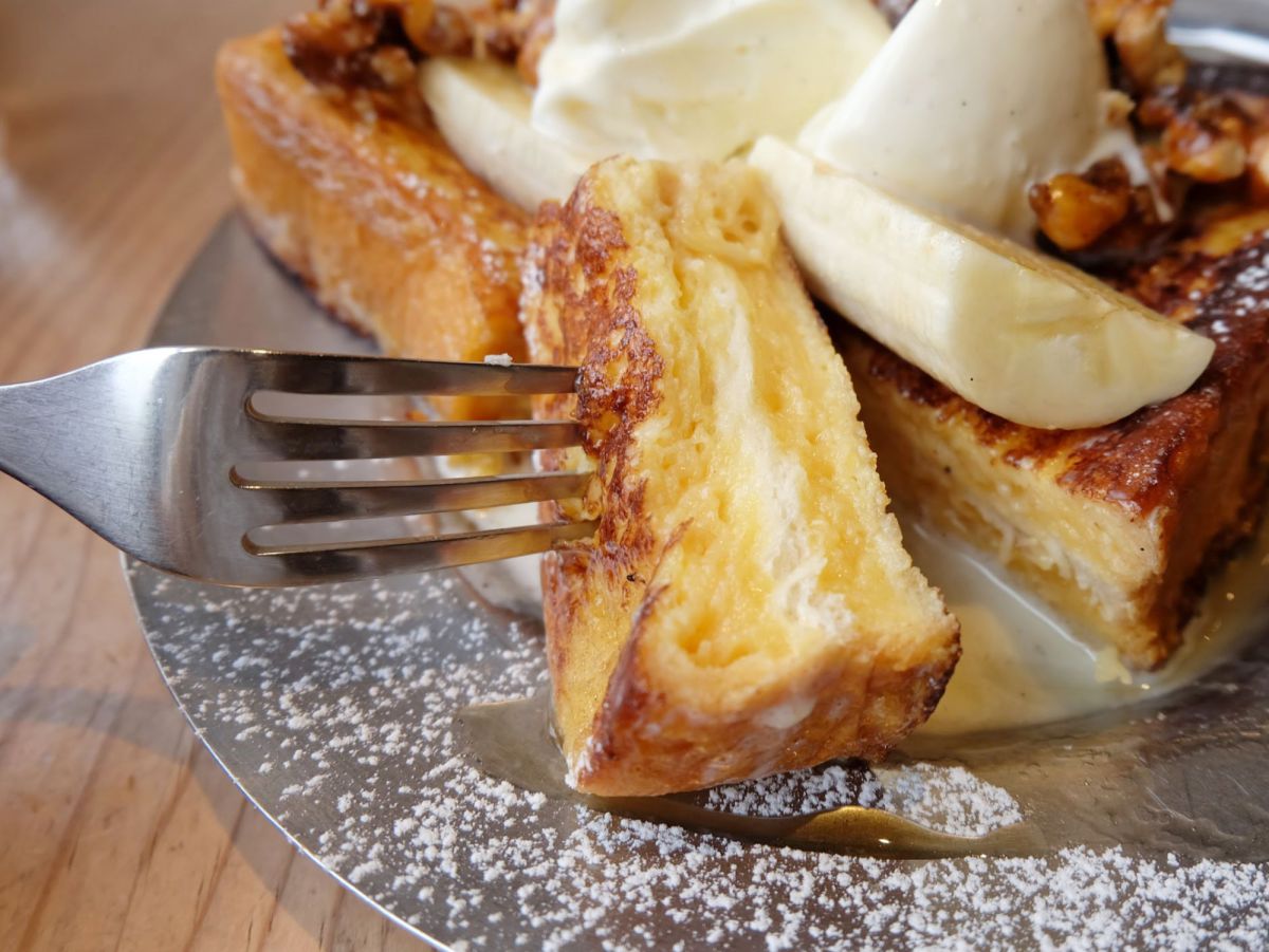 フレンチトーストは絶妙な“とろふわ感”。シンプルかつバランスのよいトッピングと共にほおばれば、至福の味わいと食感が広がります。