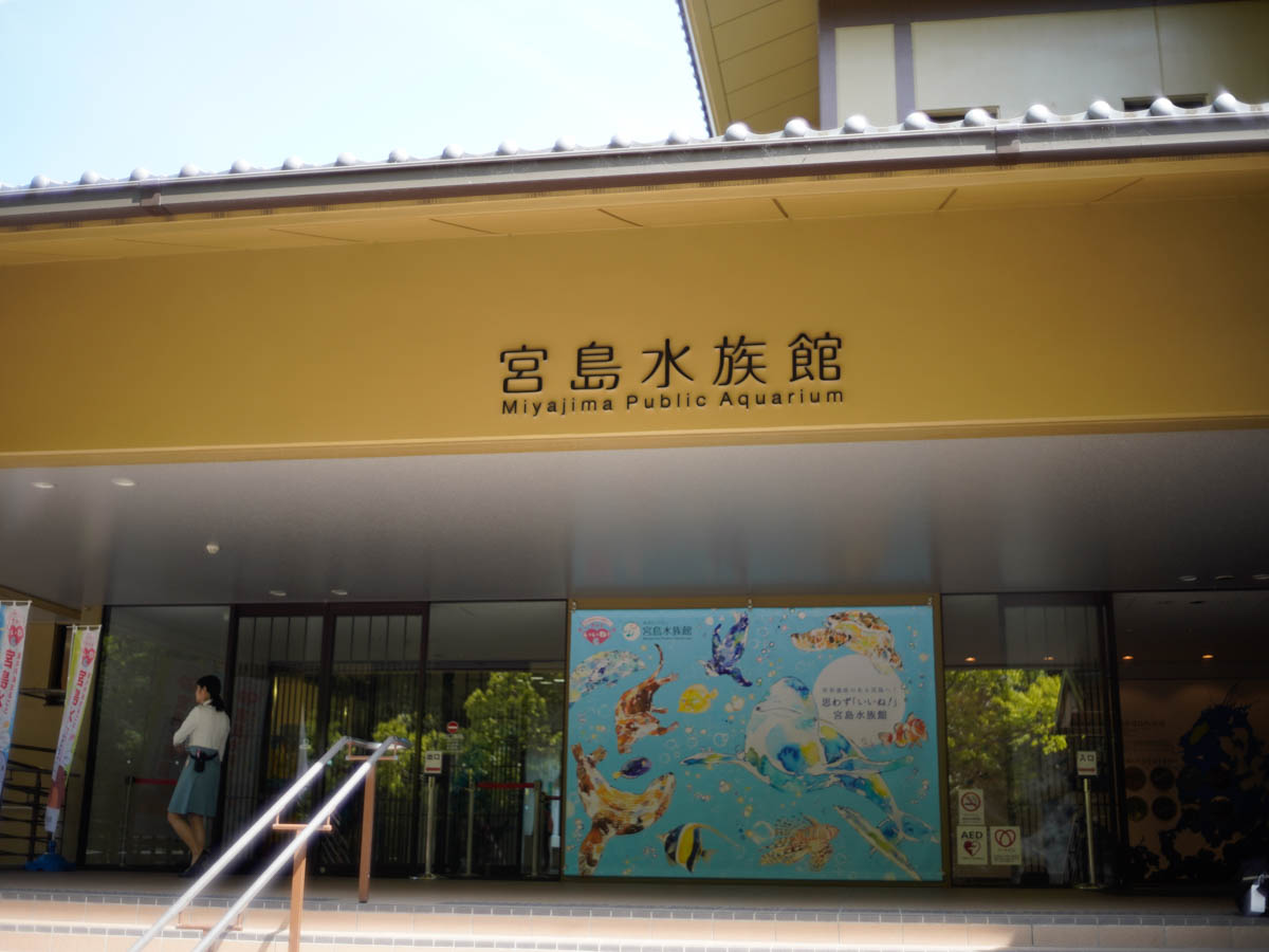 「宮島水族館」は「嚴島神社」の出口から徒歩5分のところにあります。建物は、瓦屋根が特徴的。