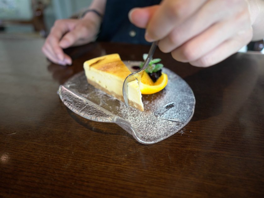 こちらは「Cafe Lente」唯一のスイーツメニュー。自家製にこだわり、丁寧に作られています。クリームチーズ、パルメザンチーズ、サワークリームの3つを使うことで濃厚さを出しているのだとか。