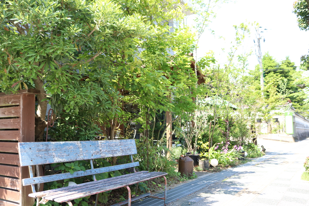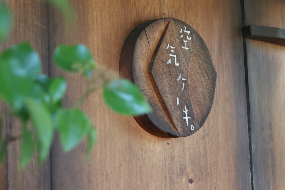 鹿で有名な奈良公園から少し南下し、奈良の自然が感じられるエリアを歩いていると、力強い緑の生い茂った一角が目に留まります。ここがパティスリー「空気ケーキ。」。緑の隙間から、ナチュラルな木の看板が顔を出します。