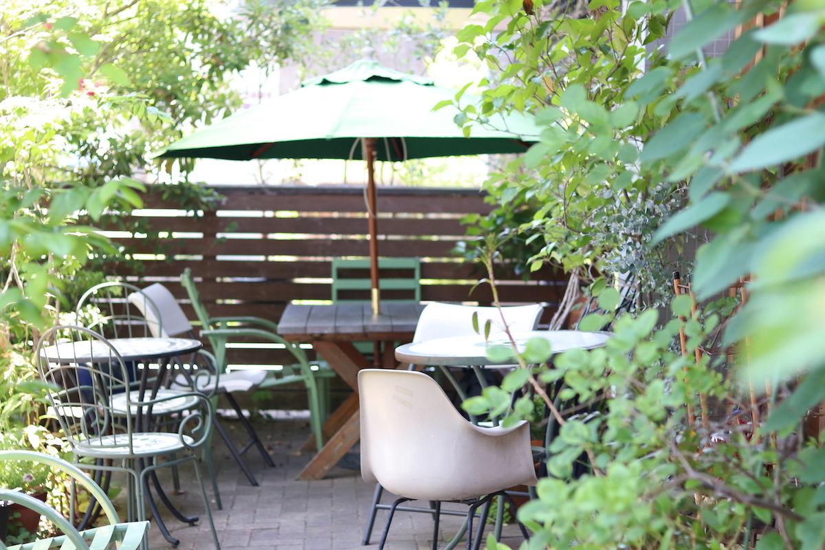 店内の大きな窓からはやわらかな光が降り注ぎ、あたたかな雰囲気がしています。そこにいるだけでなんだかほっこりした気分に。窓の外に広がる緑は、まるで別荘を訪れているような気分になるほど。