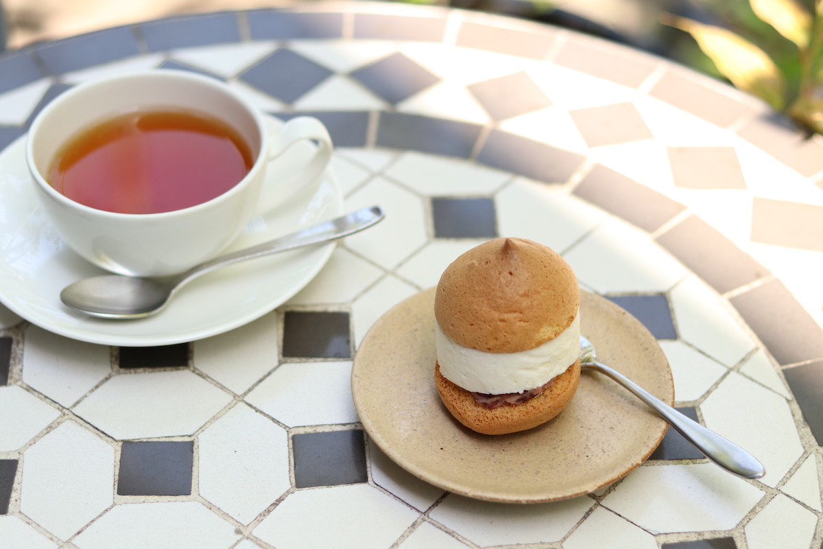 小豆を挟んだ「プレーン」や、抹茶ムースの「抹茶」、柑橘の爽やかさが後を引く「オレンジ」など、空気のような軽やかさはそのままに種類はさまざま。季節によって味わいが変化し、常時4種類ほどがショーケースに並びます。